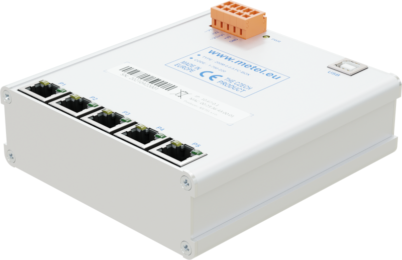 Switch industriale con 5x porte FE con protezione da sovratensioni da 150A, porta USB per la gestione locale, ingresso di alimentazione ridondante, protezioni da sovratensioni su tutti gli ingressi, GESTIONE DEGLI EVENTI: SMTP, eventi TCP, eventi ETH, client HTTP (controllo telecamera), 8x IPWatchdog.... temperatura operativa -40...+70°C, VLAN, QoS, IGMP, SNMPv2/v3, SNTP, installazione su superficie piana o DIN35, 12VDC/24VDC/48VDC/12VAC/24VAC/56VDC