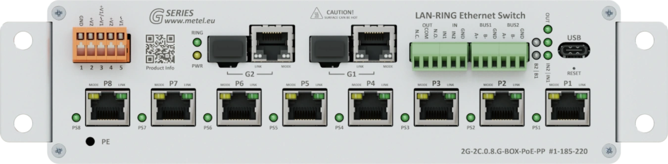 Przełączniki zarządzane przemysłowo z konfiguracją SSH CLI i SIMULand GUI są wyposażone w 2x slot SFP, 8x port Fast Ethernet z PoE, obsługują UPOE, POH, 802.3af/at/bt, limity PoE: maks. 270 W dla całego przełącznika / 170 W dla portów 1-4 lub 5-8 i maks. 95 W na port, maksymalny całkowity pobór mocy PoE na wszystkich portach to 270 W, zabezpieczenia przeciwprzepięciowe portów FE 1000 A, 2x DI z obsługą pętli zbalansowanych, 1x programowalne wyjście NO/NC RELAY, 2x RS485 / 1x RS422 BUS (obsługa modułów MODBUS, serwer TCP, tryb UDP), port USB do lokalnego zarządzania, redundantne wejście zasilania, ochrona przeciwprzepięciowa na wszystkich wejściach, ZARZĄDZANIE ZDARZENIAMI: SMTP, zdarzenia TCP, zdarzenia ETH, klient HTTP (sterowanie kamerą), 8x IPWatchdog.... , temperatura pracy -40...+70 °C, VLAN, QoS, IGMP, SNMPv2/v3, SNTP, montaż na płaskim podłożu lub DIN35, 12VDC/24VDC/48VDC/12VAC/24VAC/56VDC