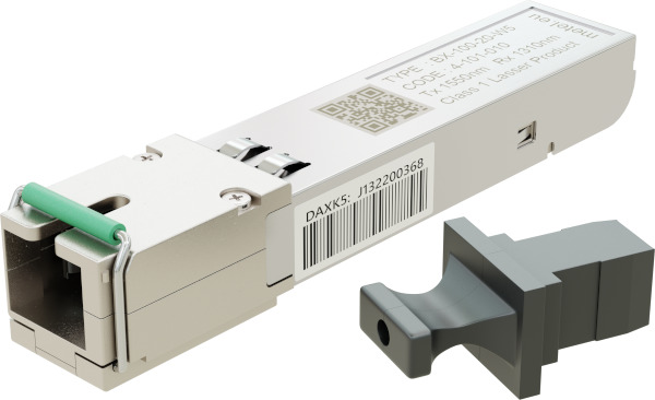 Vysílače typu Small Form-factor Pluggable, 100BaseBX (200M), Tx1550nm/Rx1310nm, univerzální MM/SM, WDM (obousměrná komunikace s jedním vláknem), rozsah provozních teplot od -40 do +70 °C