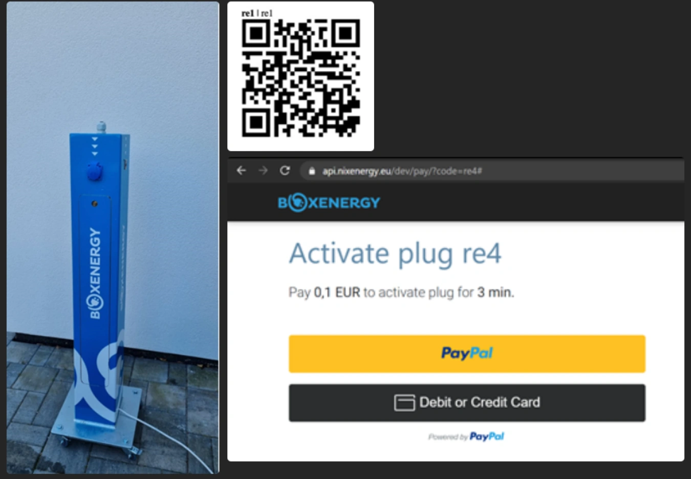 Na sloupku je umístěn QR kód, který po naskenování v mobilní aplikaci jednoznačně identifikuje konkrétní místo a sloupek. Provedením platby klient aktivuje nabíjení svého kola na objednanou dobu. Během této doby může využít kavárnu nebo navštívit muzeum. Ve sloupci je umístěn IPLOG s rozhraním LTE, který přijímá informace o zakoupené době nabíjení z centrálního serveru a aktivuje výstup nabíječky na určenou dobu.