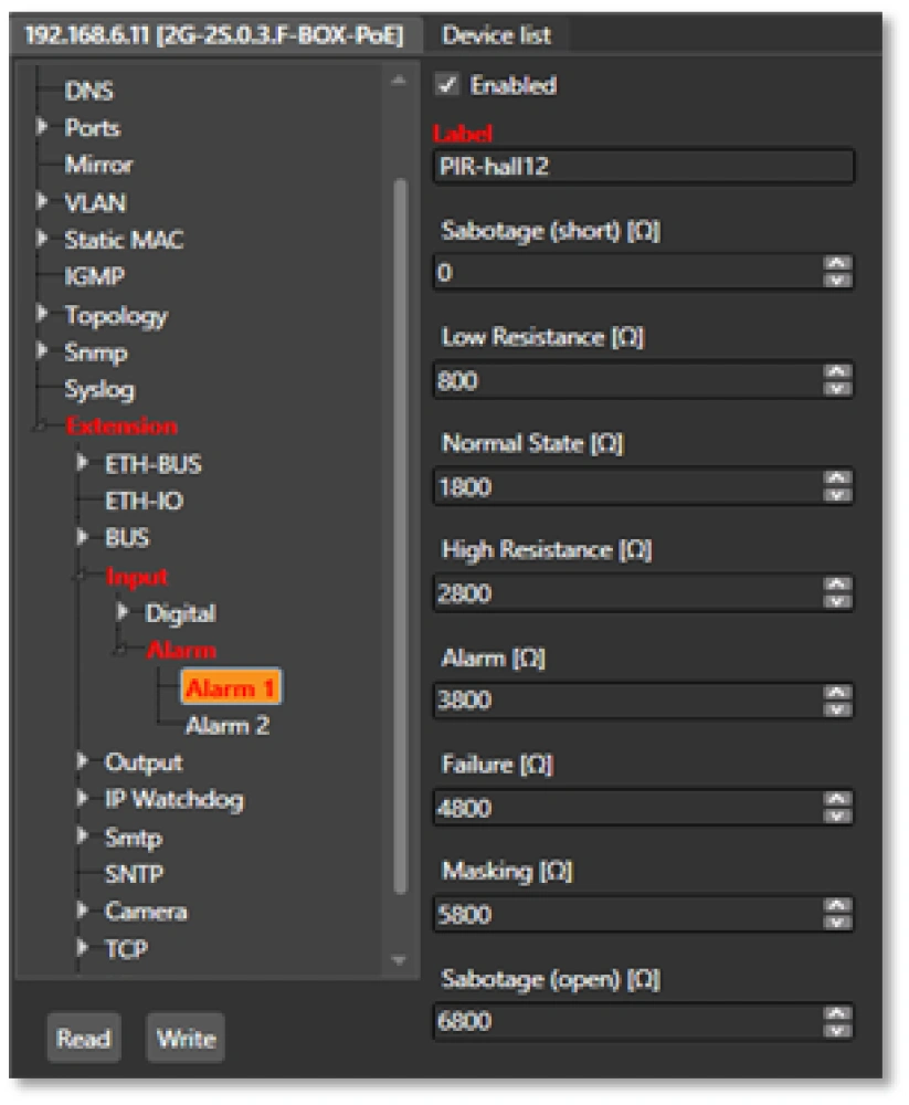 Gli ingressi digitali degli interruttori e delle unità di monitoraggio IPLOG possono essere commutati in modalità ALARM per supportare i loop bilanciati utilizzati nei sistemi di allarme.