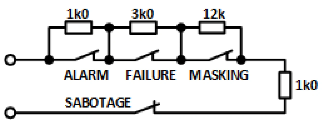 Cablaggio di una zona a doppio bilanciamento con segnalazione e mascheramento dei guasti