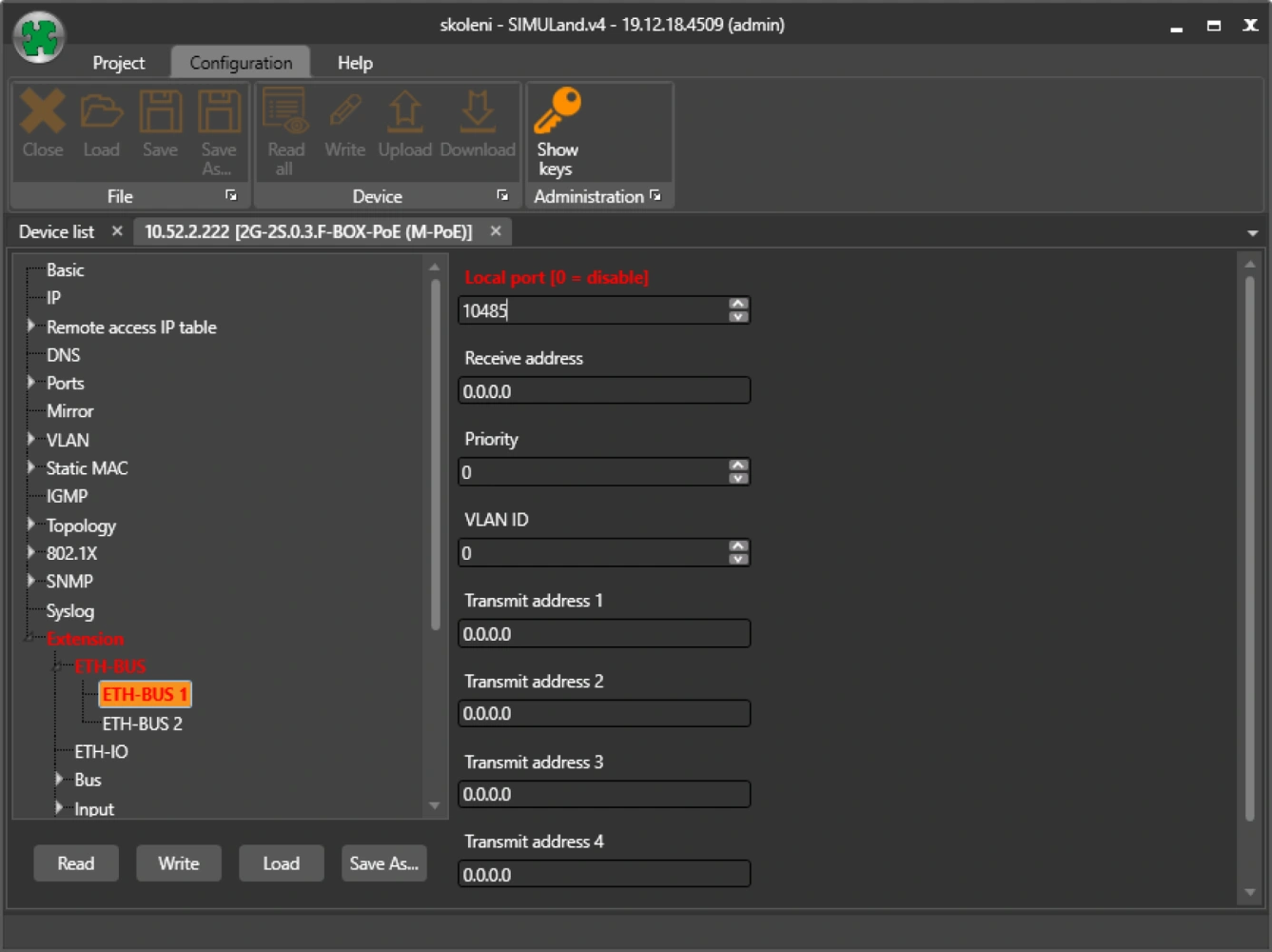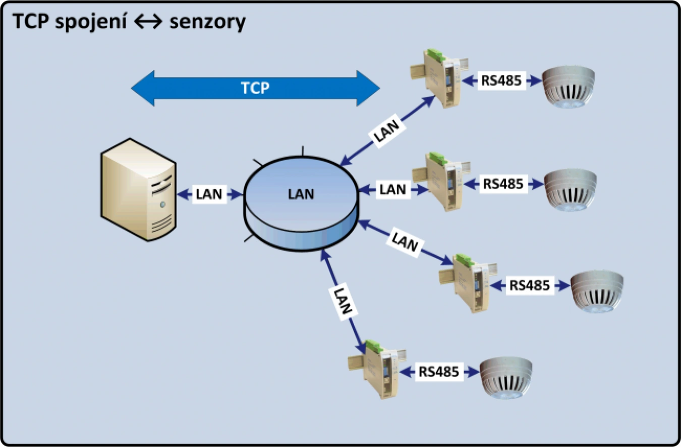 I dispositivi METEL IP supportano di default la modalità TCP sulle porte RS485 e RS232. I dispositivi finali, che in questo caso sono switch LAN-RING, unità di monitoraggio IPLOG o convertitori di collegamenti seriali miniLAN, sono impostati sulla modalità server TCP. Dopo aver impostato la porta TCP e la modalità di comunicazione in un unico passaggio, è possibile effettuare la connessione: