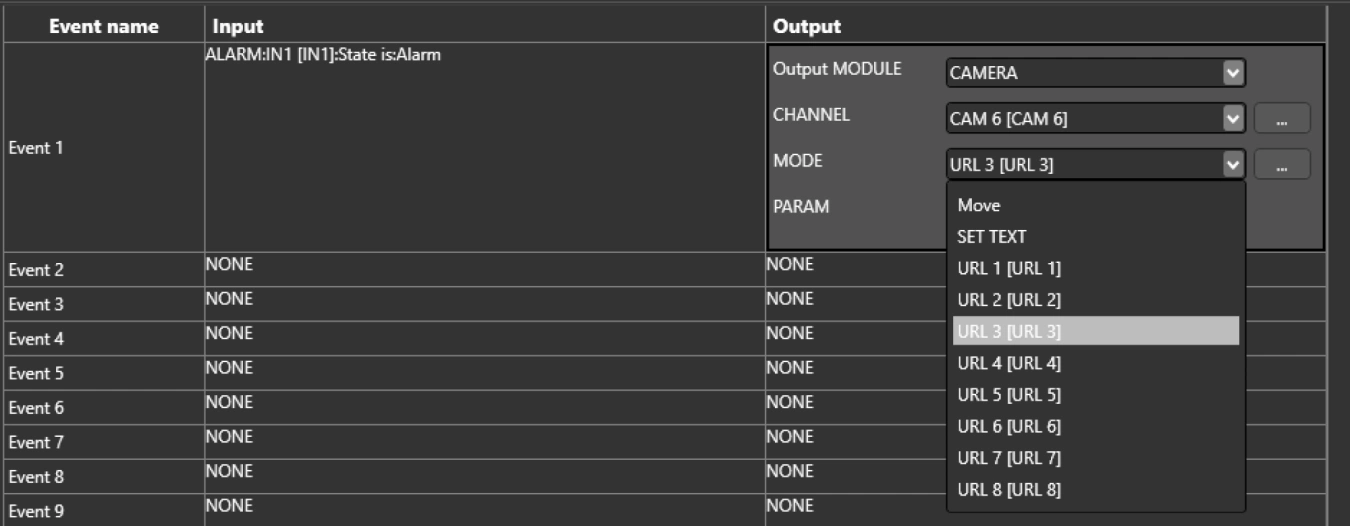 In the second step we set the automatic actions themselves. The first example shows the settings for natively supported AXIS cameras: