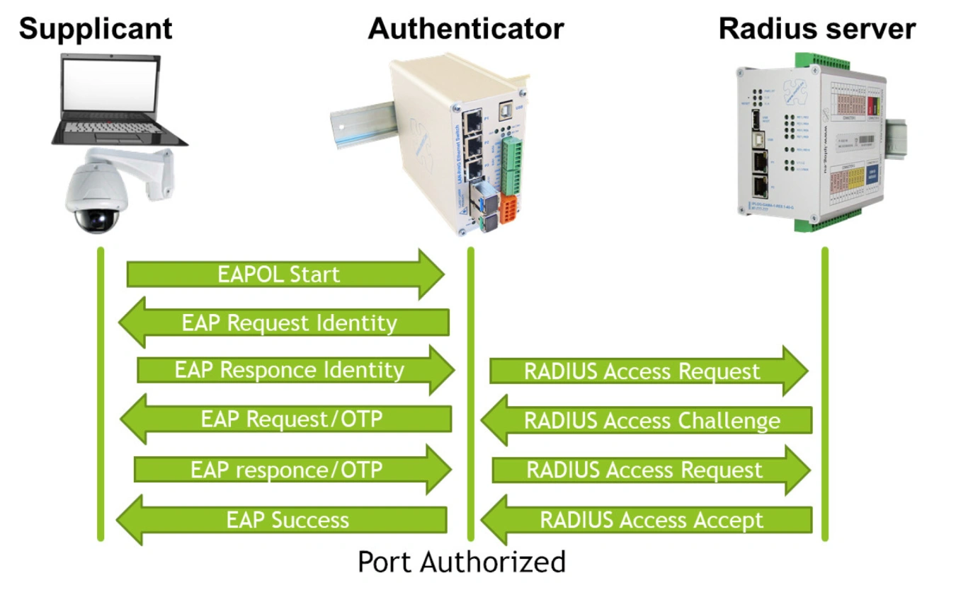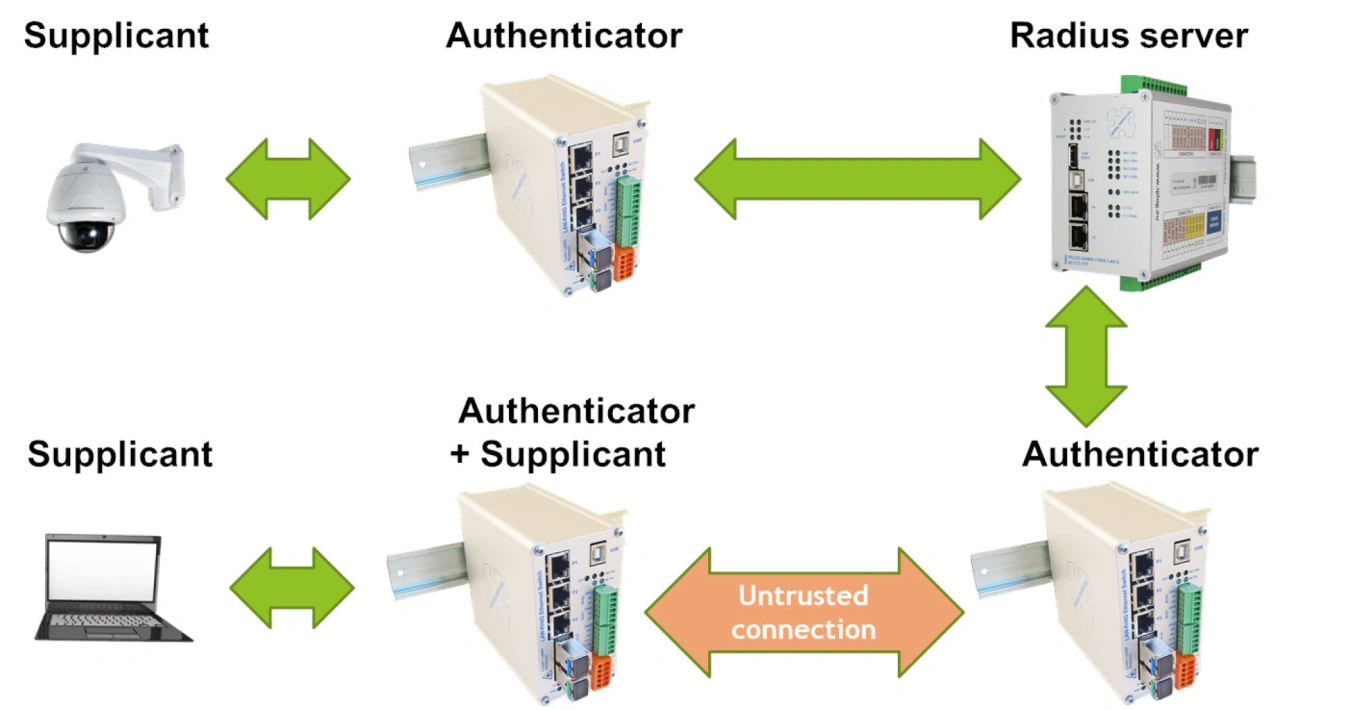Protokół IEEE802.1X jest bardzo popularnym narzędziem do uwierzytelniania użytkowników. Ma on słabe punkty w standardowych implementacjach. Może blokować nieautoryzowanym użytkownikom dostęp do sieci, ale to wszystko. W naszej implementacji dodaliśmy ważną funkcję, która pomaga zwiększyć bezpieczeństwo. Wszyscy nieautoryzowani użytkownicy są natychmiast zgłaszani przez SNMP TRAP do oprogramowania wizualizacyjnego. Dlatego potencjalny atakujący może zostać natychmiast złapany i nie będzie miał czasu na włamanie się do sieci.