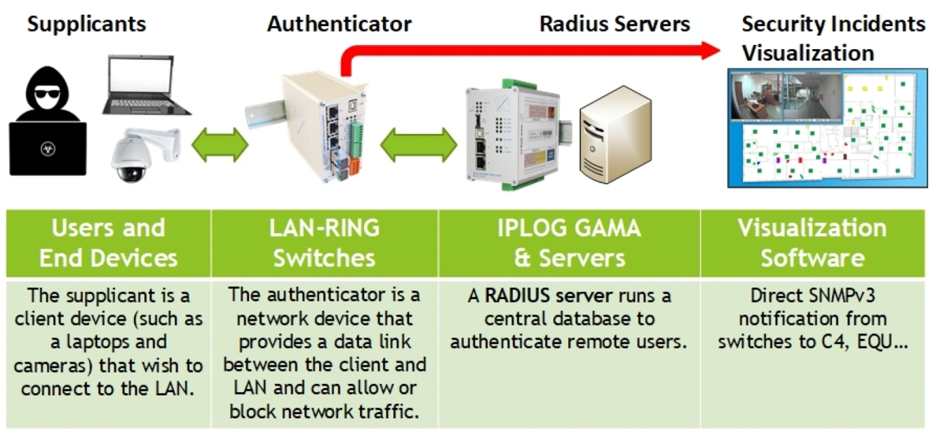 LAN-RING & IPLOG umożliwia integratorom stworzenie kompletnego systemu infrastruktury sieciowej z uwierzytelnianiem IEEE802.1X niezależnie od innych dostawców.