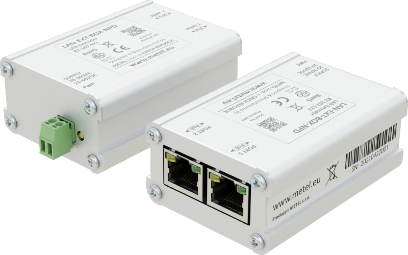 Extenders are a simple solution if you need to extend your LAN or LAN with PoE by another 100m. Their big advantage is that they do not require additional power supply and can be powered from PoE directly via UTP/FTP cable.