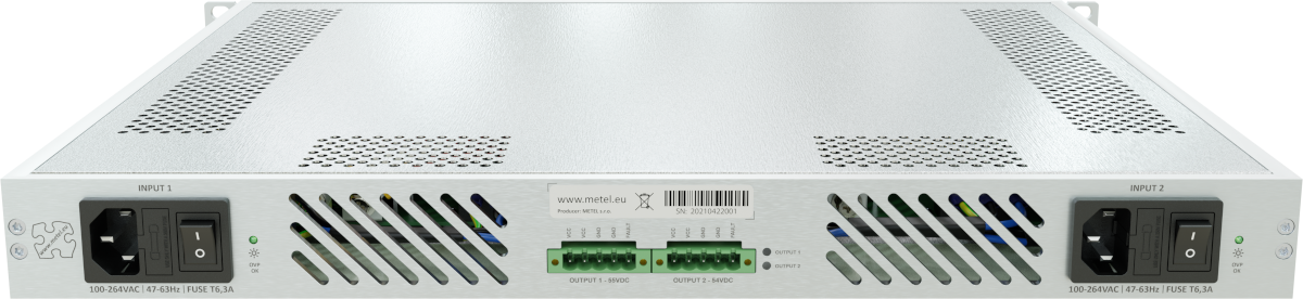 Zasilacze M-PPS z funkcją PFC. Wbudowany kontrolowany wentylator zapewnia temperaturę pracy do +70 °C. Wbudowane zabezpieczenia przed zwarciem, przeciążeniem, przepięciem i przegrzaniem zapewniają długotrwałą niezawodność. Zasilacze pracują z napięciem wejściowym od 90 do 264 VAC. Napięcie wyjściowe 55/54 VDC, moc 2x 750 W.