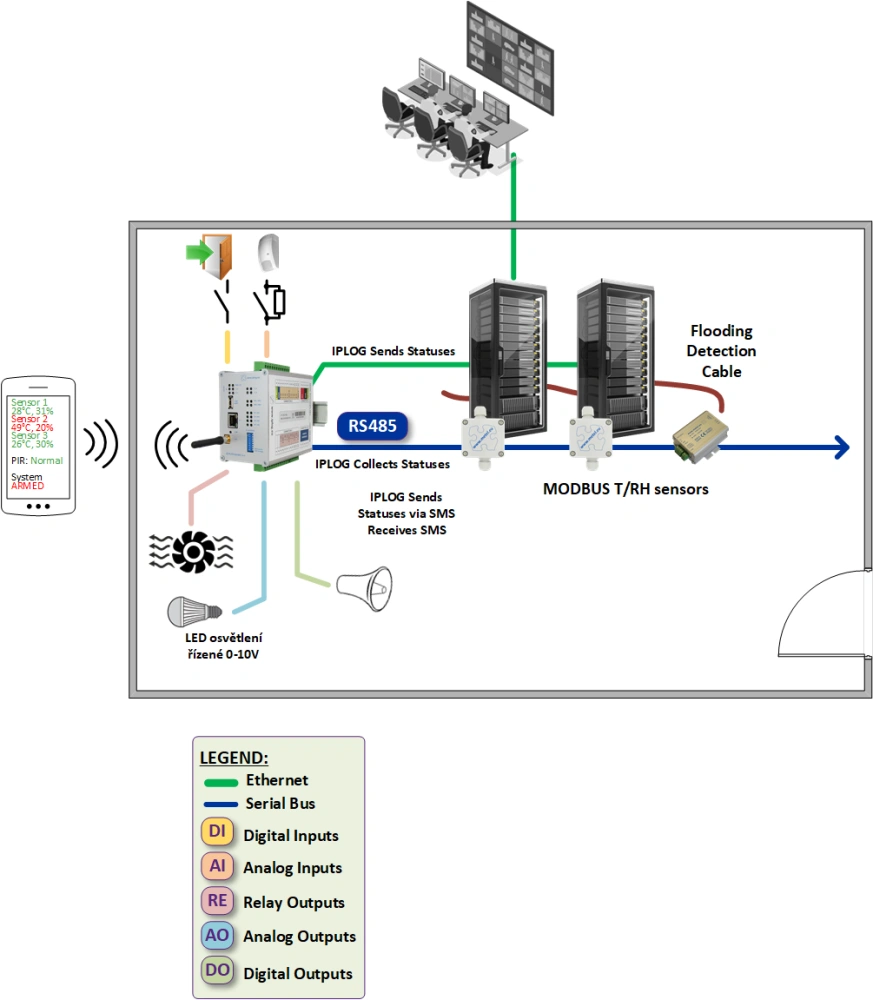 IPLOG-GAMA è un sistema IP flessibile adatto al monitoraggio remoto degli ambienti e all'aumento del livello di sicurezza nei data center e nelle sale server. In particolare, i seguenti compiti: