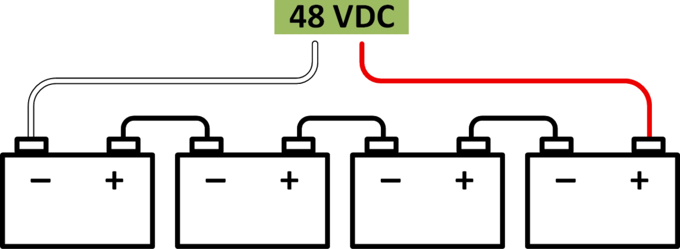 | Uscita per le batterie | 4 batterie da 12 V collegate in serie |