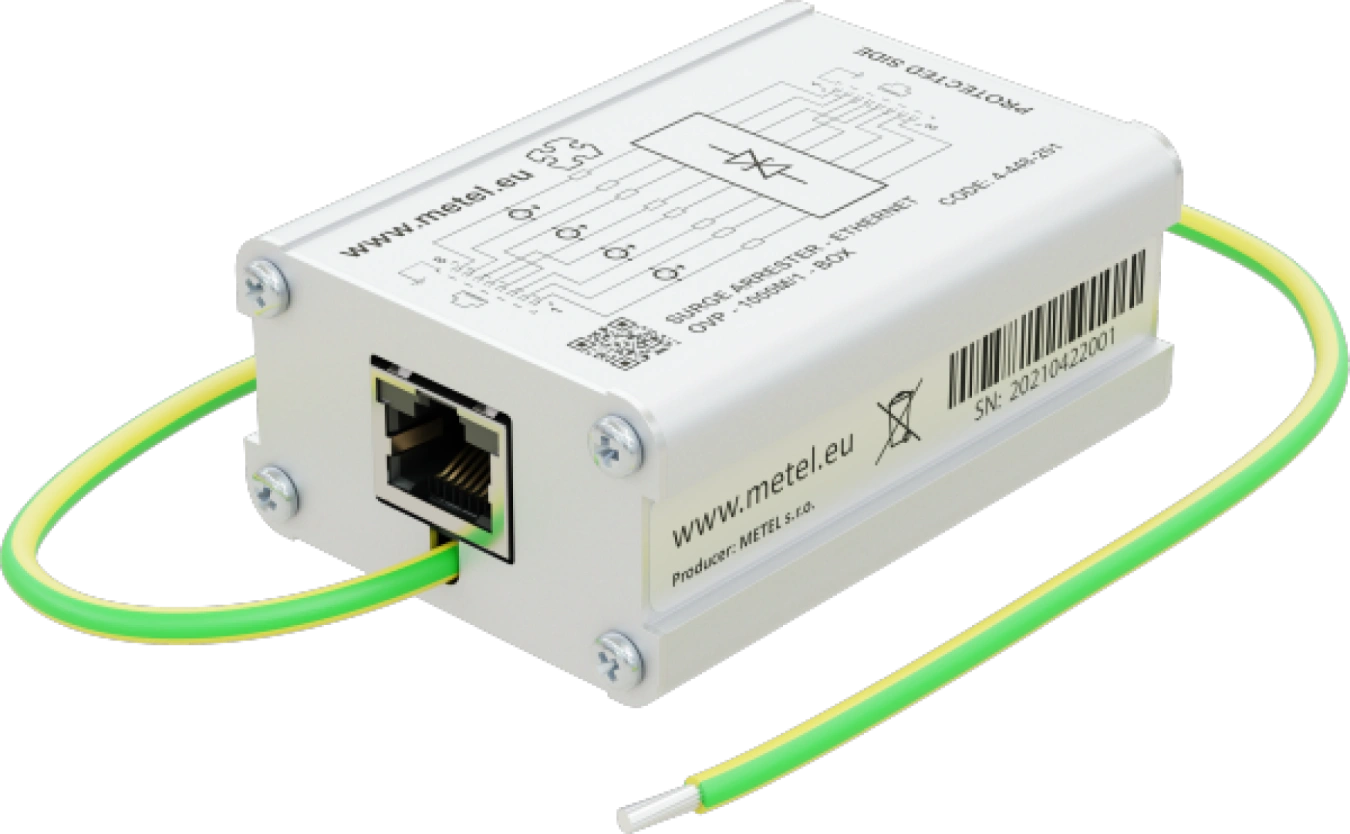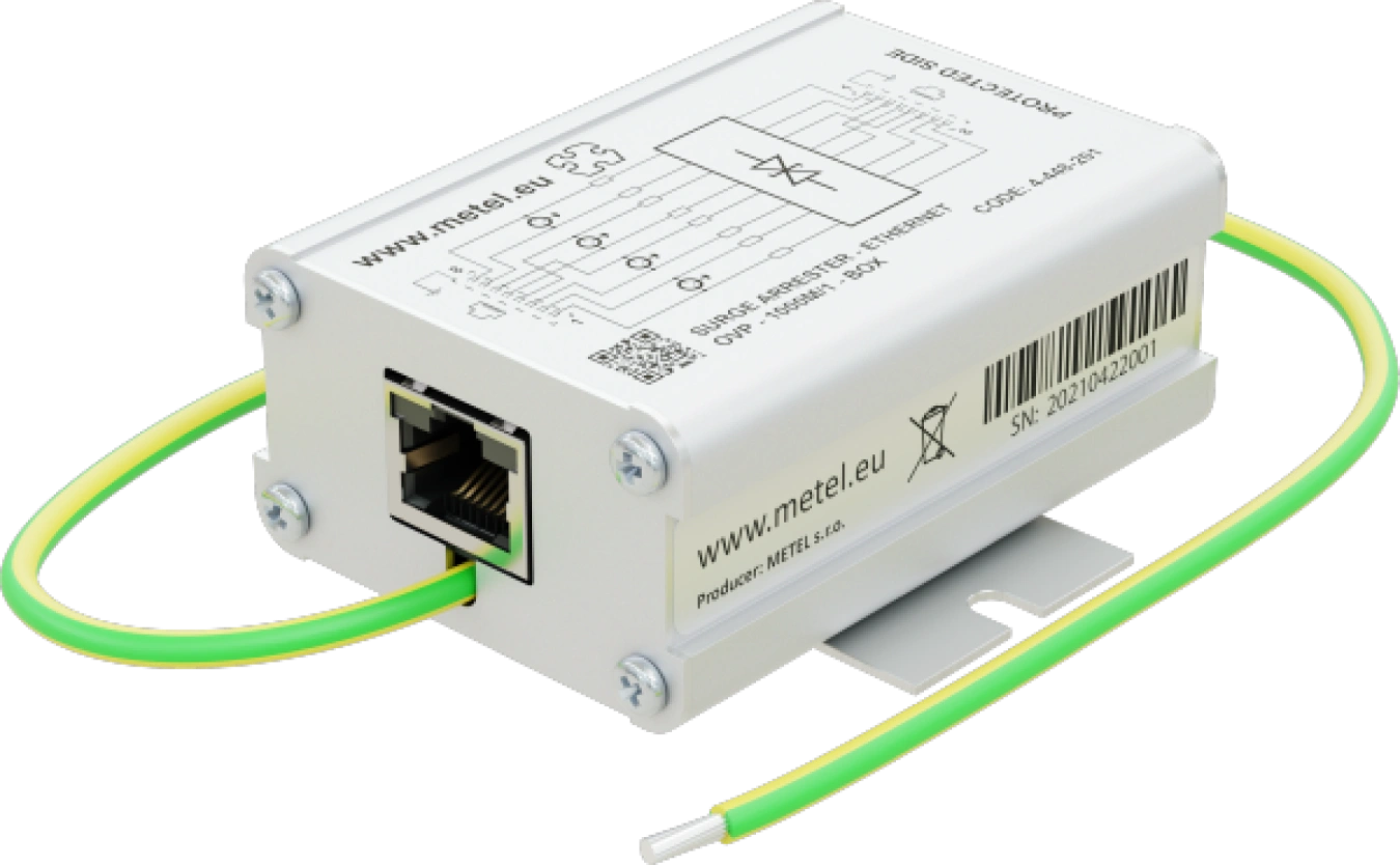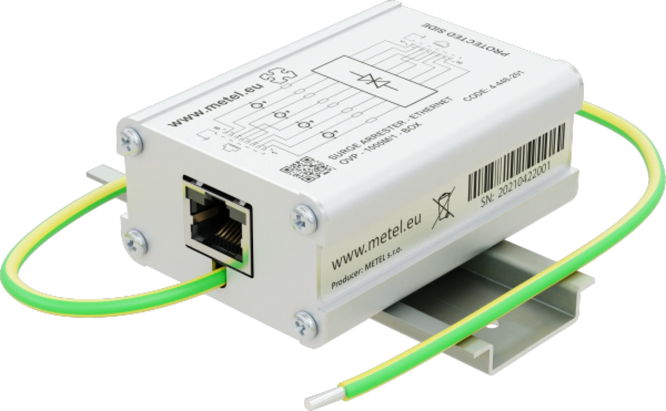 OVP-1000M/1-BOX, 1000BASE-T interface surge protector, two-stage design, galvanically isolated PE terminal, installation on flat surface or DIN35