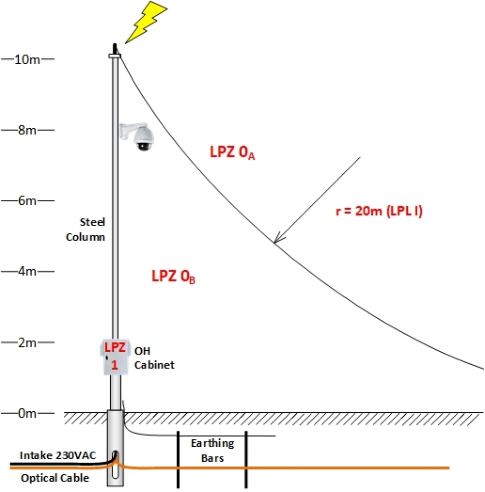 Quando si installa su pali indipendenti, la sfida più grande è probabilmente quella di soddisfare il requisito sopra menzionato di installare il sistema protetto all'interno della zona LPZ 1.