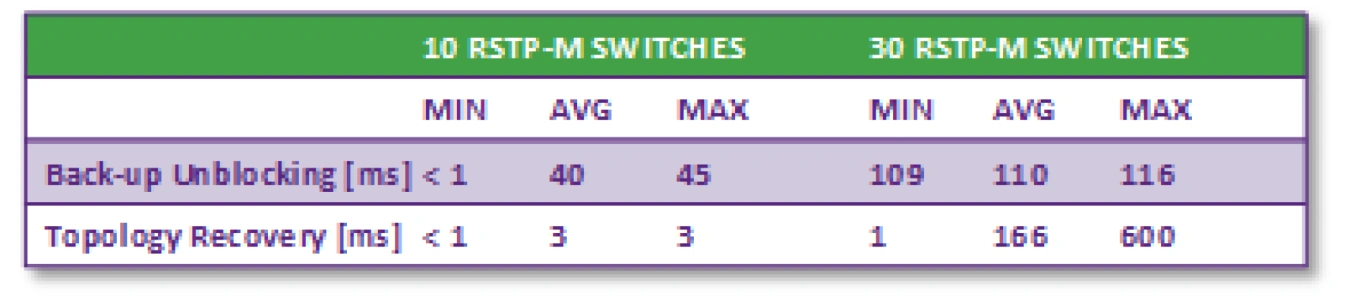 RSTP-M meets the requirements of security and automation systems to quickly provide a backup route in the event of a failure while: