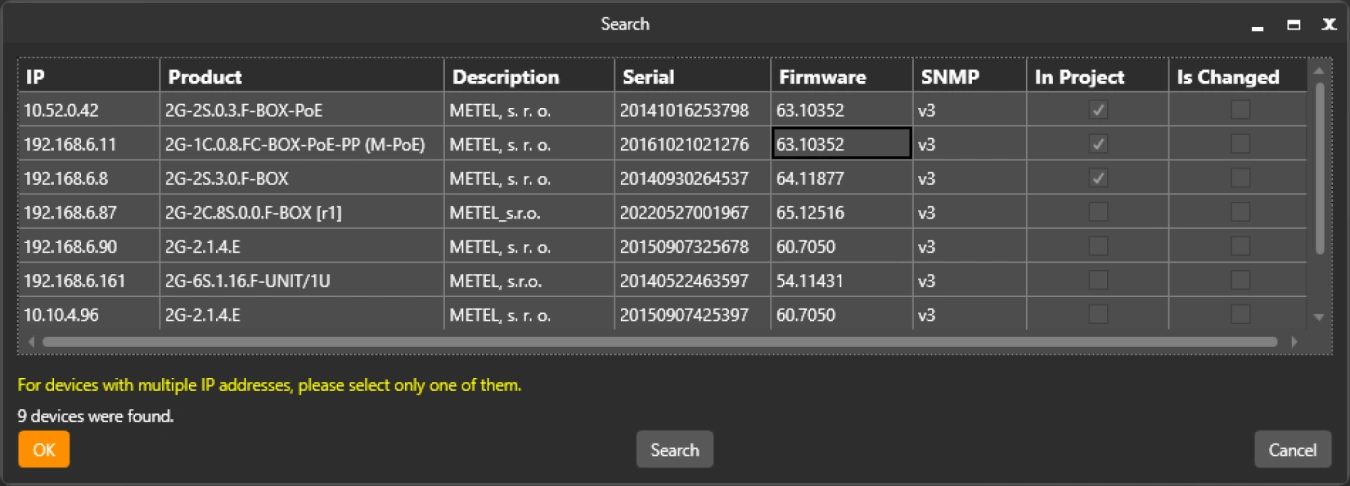 One of SIMULand's great strengths is the ability to automatically search for devices available on the LAN directly from the GUI.