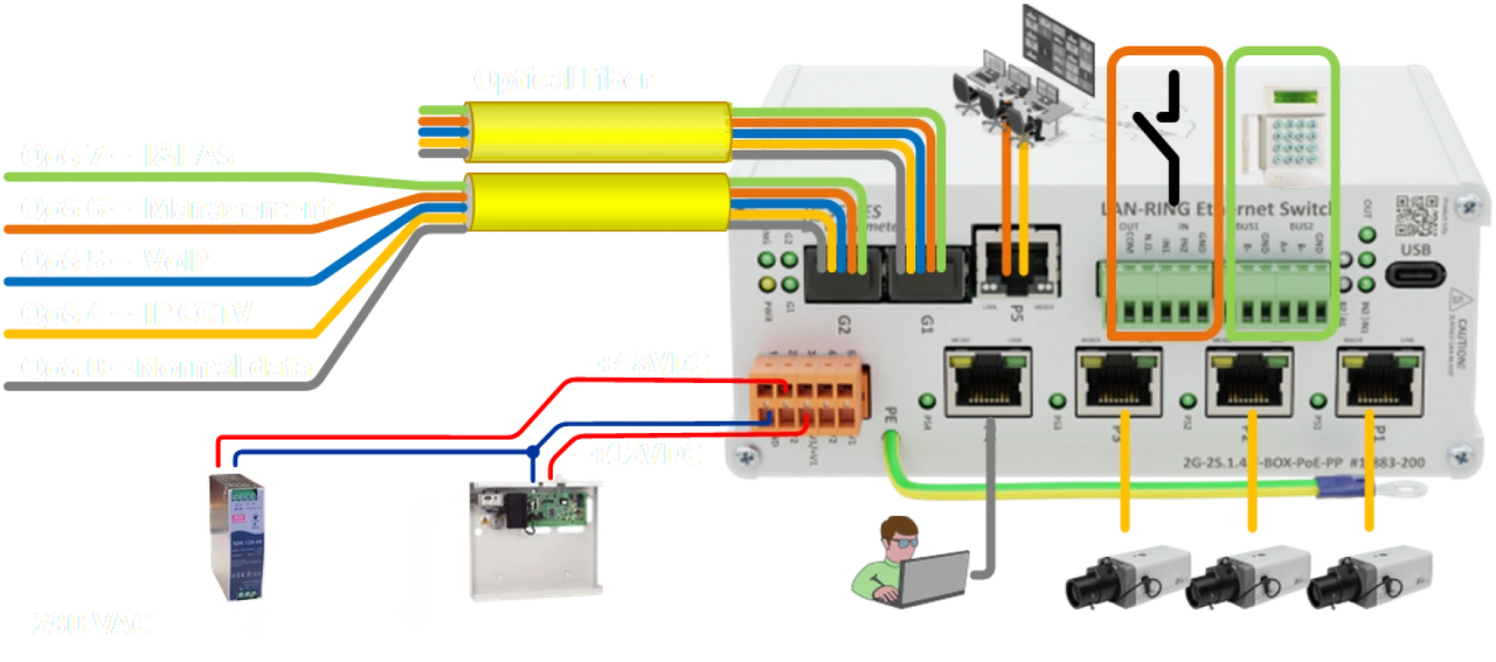 Při použití přepínačů LAN-RING jako přenosové trasy získáváte zásadní technologický náskok. Naše zařízení umožňují aplikovat oddělené VLAN a priority nejen pro standardní ethernetová data, ale také pro: