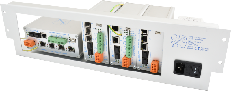 19" police SHELF 3U/IP SU jsou určeny pro montáž switchů LAN RING a média konvertorů v provedení BOX do 19" stojanů.