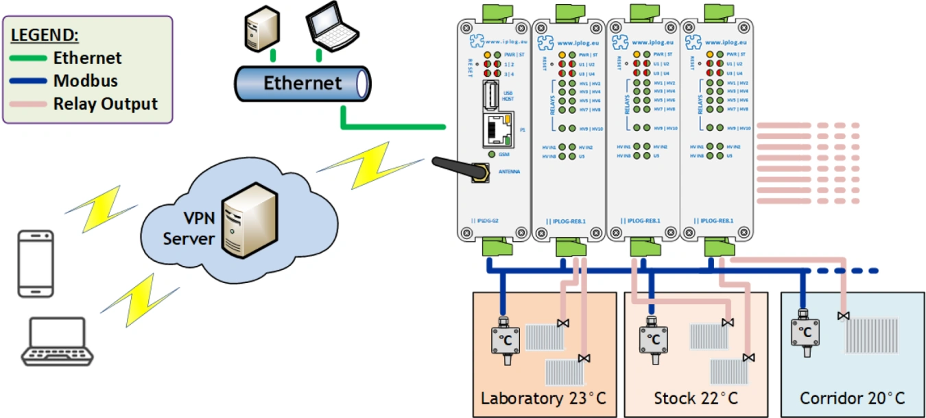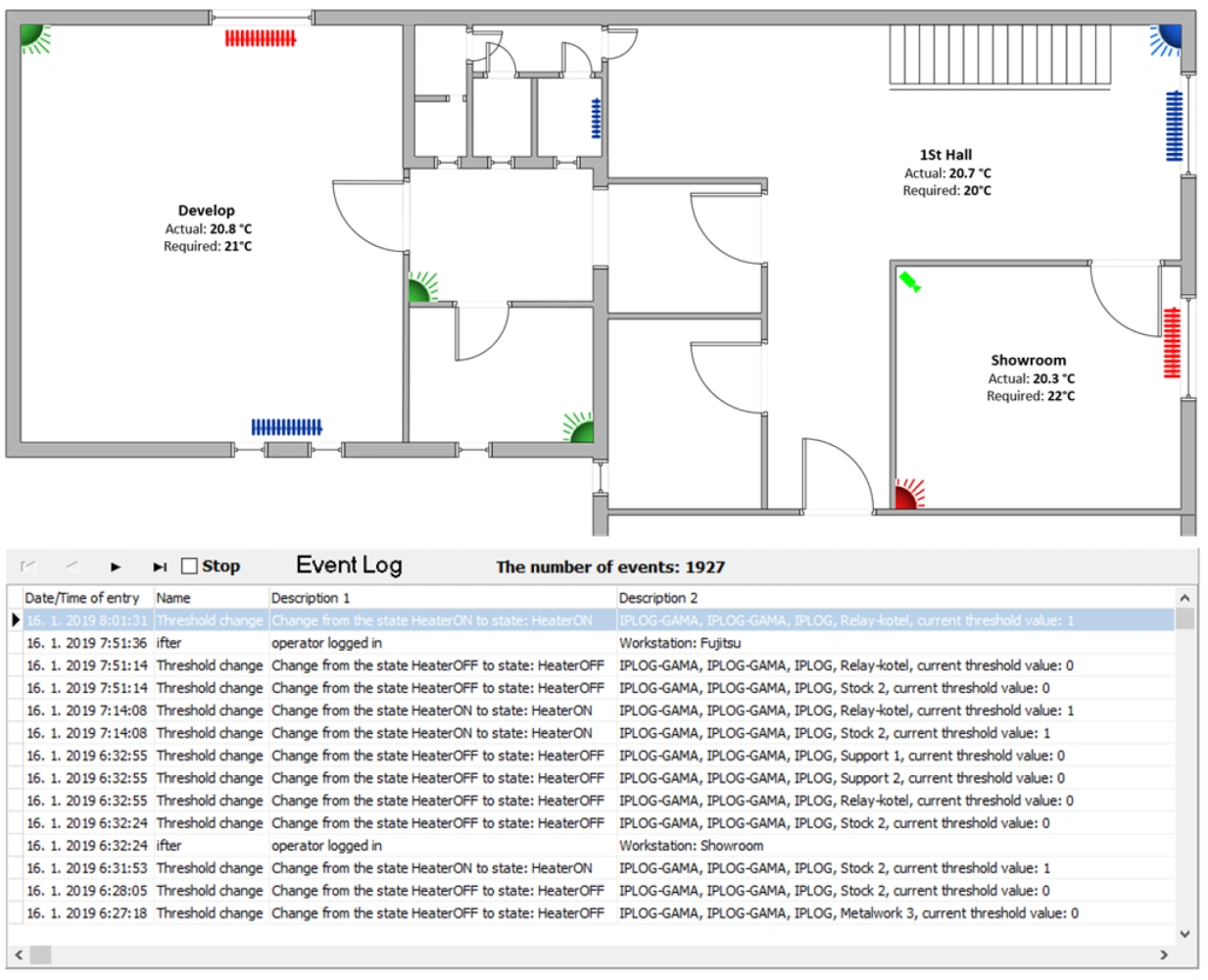 LOGGER - per qualsiasi sistema di questo tipo è utile conoscere la sua storia oltre ai dati attuali. Pertanto, tutti i dati misurati vengono memorizzati in un database locale MySQL nel PLC e nel database del software di visualizzazione.