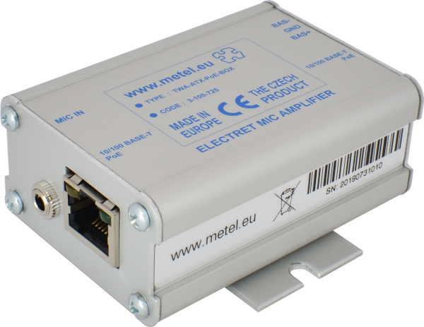 TWA-ATX-PoE-BOX nahrazuje mikrofony TWA-MIC-1Vpp a TWA-MIC/12-24, audio zesilovače jsou určeny pro připojení k IP kamerám s linkovými audio vstupy, přímé připojení k DVR, přenos audio signálu po kroucených kabelech, napájení PoE, 2x RJ45, 1x mikrofonní vstup, 1x linkový výstup / kroucený výstup.